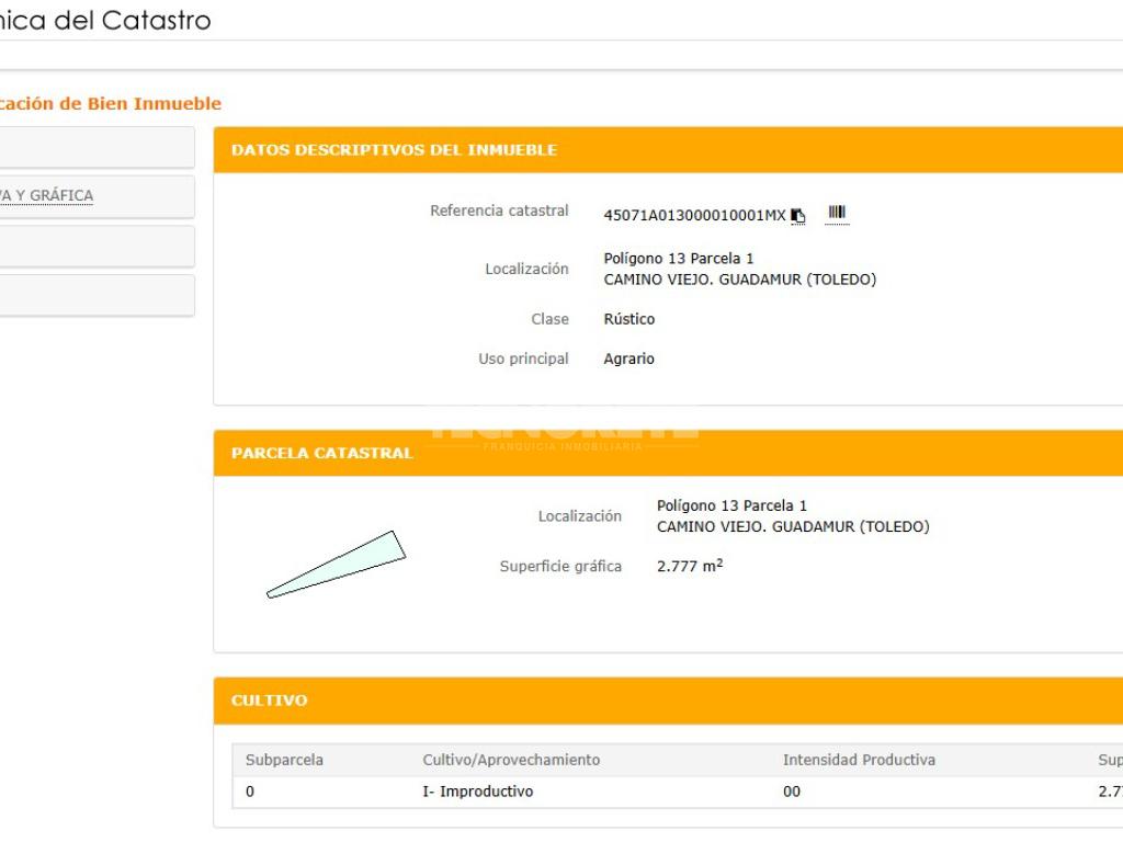 AGENCIA INMOBILIARIA TECNORETE - situada en RONDA BUENAVISTA (TOLEDO) VENDE: PARCELA/TERRENO RÚSTICO de 2.800 m². , entre las localidades de GUADAMUR y POLÁN (TOLEDO)