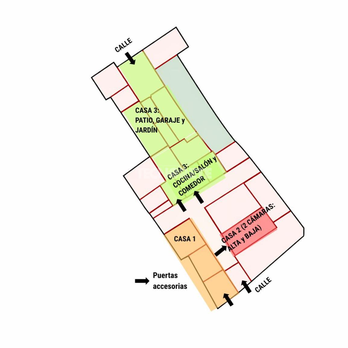 El inmueble consta de 3 CASAS INDEPENDIENTES reformadas, cada una con su propio baño reformado con plato de ducha nuevo, además de un salón luminoso con chimenea y amplio comedor. El inmueble consta además de un patio comunitario y un patio individual y privativo también con jardín y garaje.